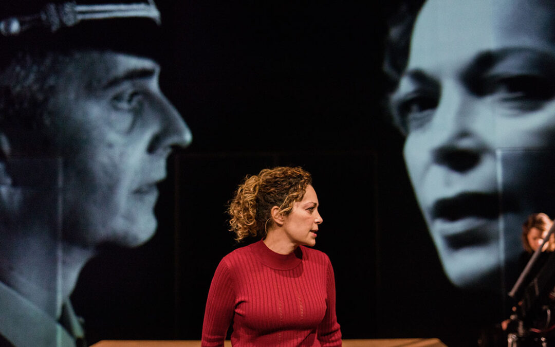 El cas és que d’aquest immens parany, en va fer fa ja a la vora dues dècades Juan Mayorga una obra teatral que s’ha representat amb notable èxit a diversos escenaris estatals i internacionals . I que a casa nostra, ha estat vist en varies ocasions des de la seva estrena l’any 2013 a la Sala Atrium , sempre dirigida i interpretada pel mateix Raimon Molins que ara recupera el text, tot sotmetent-lo alhora a un nou plantejament en el qual, l’apartat videogràfic agafa una més gran dimensió. Tot i que en ella no hi tinguin cabuda cap d’aquelles imatges reals que , paradoxalment, vindrien a investir la proposta amb la brutal força dramàtica que, per contra, li manca un xic al seu actual embolcall visual. Molins pren en aquest sentit una opció similar a la que va prendre fa poc tot revisant també el seu primer muntatge d’ “Érem tres germanes”, el text escrit per José Sanchis Sinisterra a mena de variació de “Les tres germanes “ txèkhovianes. Aquí, però, ens falta quelcom semblant a la fantàstica casa de nines que aglutinava els itineraris vitals dels protagonistes de l’anterior muntatge. Aquí les imatges resulten vistoses però més epidèrmiques. I no aconsegueixen potenciar les limitacions d’una obra que no troba mai del tot la forma d’encaixar les dues parts que l’integren . La primera, se’ns presenta en forma del monòleg interpretat des d’una severitat potser excessiva per Cristina Plazas,; el monòleg en el qual la delegada de la Creu Roja intenta explicar i/o justificar des del sentiment de culpa ( però alhora, des del convenciment que va obrar de l’única forma que podia fer-ho) el parany en el qual va caure, i a partir del qual, va escriure el tranquil·litzador informe que exculpava el camp de qualsevol mena de sospita. I la segona ,desvetlla pas a pas la forma com el comandant del camp, servint-se com a director d’escena d’un dels jueus empresonats en la funesta instal·lació, va construint la representació col·lectiva que ha de donar-li credibilitat a la comèdia. I deixant de banda que aquest llarg segon fragment pot resultar de vegades un xic redundant, i que resulti també discutible algun element de la seva visualització, com ara l’ús que en fa de les titelles, crec que el gran problema d’aquest tram resideix en la desmesurada actuació de Molins, un bon actor que aquí, sembla necessitat d’una mà externa capaç de marcar-li certs límits. El seu comandant, s’apropa massa a la caricatura ridícula i típica sempre al llindar de fer saltar les costures de l’uniforme. I contribueix així a la sensació de trobar-nos davant una proposta que no acaba de trobar la forma de donar-li encertada forma escènica a un text també més prometedor que del tot reeixit.