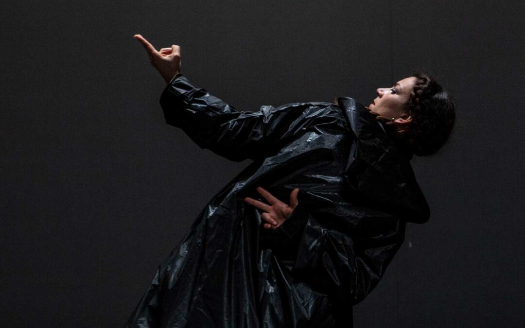 Però aquest no és el cas. Aquí ,l’ordre de les paraules, quan n’has pogut distingir algunes que van seguides,  sembla ser del tot aleatori. Aquí, el discurs, si és que aquest existeix,  no sembla obeir a les lleis de cap discurs. I potser el perill, resideixi precisament en aquesta absència de discurs, o en aquest camuflatge del discurs. Les paraules han perdut el seu sentit, no ens estant transmeten grans idees ni idees petites, i corren massa com per a que el  significant que les acompanya pugui impactar-nos. I malgrat tot, i tret que hàgim decidit desertar de l’experiència ( les desercions resulten inevitables a propostes com aquesta) , no pots apartar la vista d’elles, no pots deixar d’intentar capturar-les i revestir-les de la coherència associada al relat, encara que aquest se t’escapi constantment. Tot plegat, mentre l’extraordinària contundència sonora amb la qual Scott Gibbson omple l’espai que envolta les paraules, se’t fica pels timpans fins arribar a crear-te una mena d’inquietant ritme intern també impossible de ser limitat atorgant-li un significat concret.  Potser per això mateix, l’aspecte més qüestionable de la proposta es troba en la una mica innecessària  presència de la ballarina i performer Gloria Dorliguzzo que precedeix a la descàrrega de signes lingüístics, malgrat la no menys inquietant qualitat de la seu breu coreografia acompanyada d’espinada cervical. En qualsevol cas, quan Dorliguzzo es treu una arracada per tal de mostrar-nos com la seva orella es concentra en l’escolta, sí ens està convidant ja a tots nosaltres a disposar-nos a escoltar i a mirar allò que de vegades vol fugir de l’oïda i de la vista per tal de passar desapercebut. És en aquestes oculta presència sigil·losa, on es troba l’amenaça manipuladora del  Tercer Reich, i de tots els altres Reich disposats a assaltar-nos .